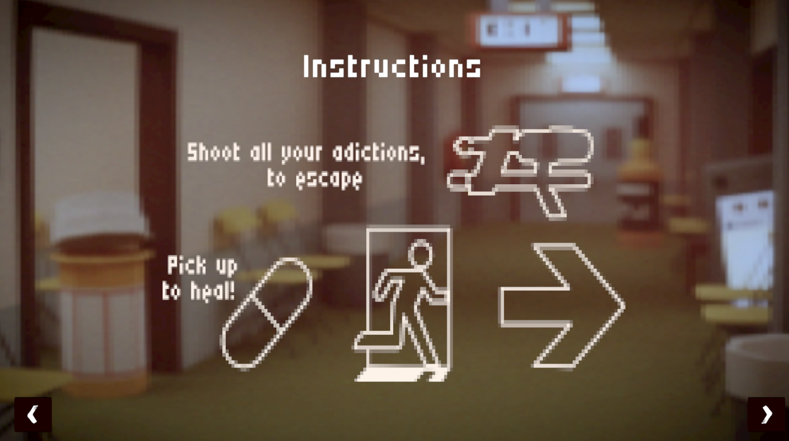 The protagonist finds himself in a rehabilitation center, which represents the mental loop he is trapped in due to the severe disconnection from reality caused by his addictions.